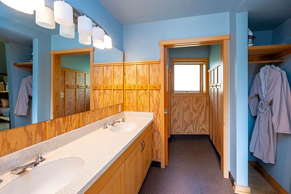 This guest accommodations includes a loft area that is accessible via ladder. Children under 7 years of age are not allowed in lofts. The main floor features two additional beds.